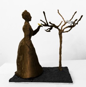 Corrine’s most recent work to date is her submission to the Emily Williamson Statue Campaign. Below is her final submission showing an impression of the maquette if it were cast in bronze, with silver and gold gilt birds, which was longlisted (12 out of 24). Read more about Corrine’s submission to the competition here.